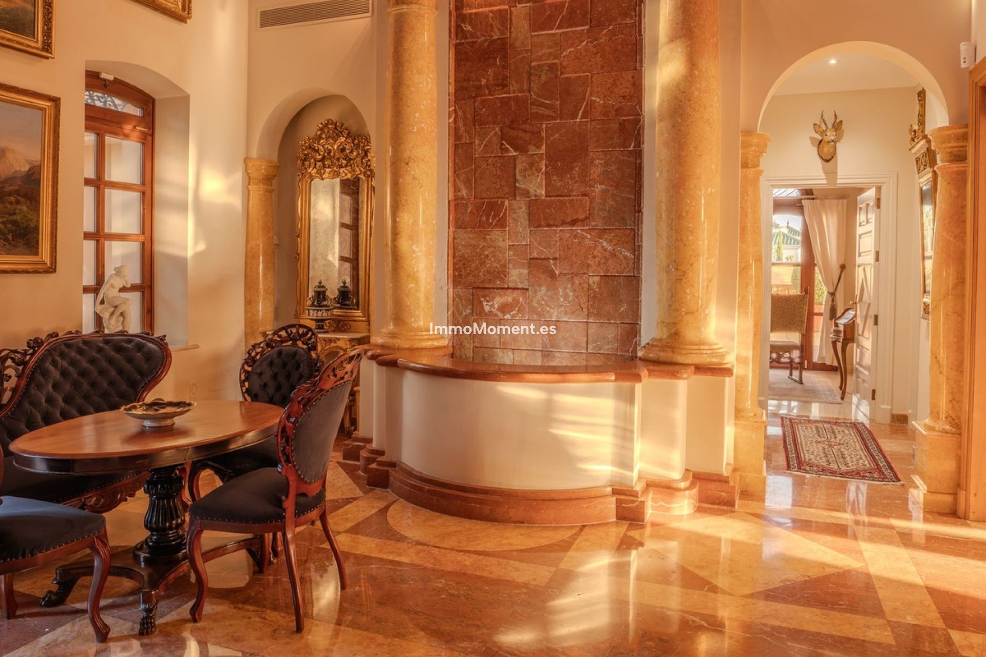 Schon bei der Einfahrt durch die doppelten elektrischen Tore entfaltet sich ein Gefühl von Größe und Noblesse. Das Anwesen verfügt über zwei separate Zufahrten, die Privatsphäre und Komfort gewährleisten. Im Inneren schaffen bis zu 11 Meter hohe Decken, maßgefertigte Holzarbeiten und Marmortreppen eine Atmosphäre zeitloser Eleganz und architektonischer Harmonie.