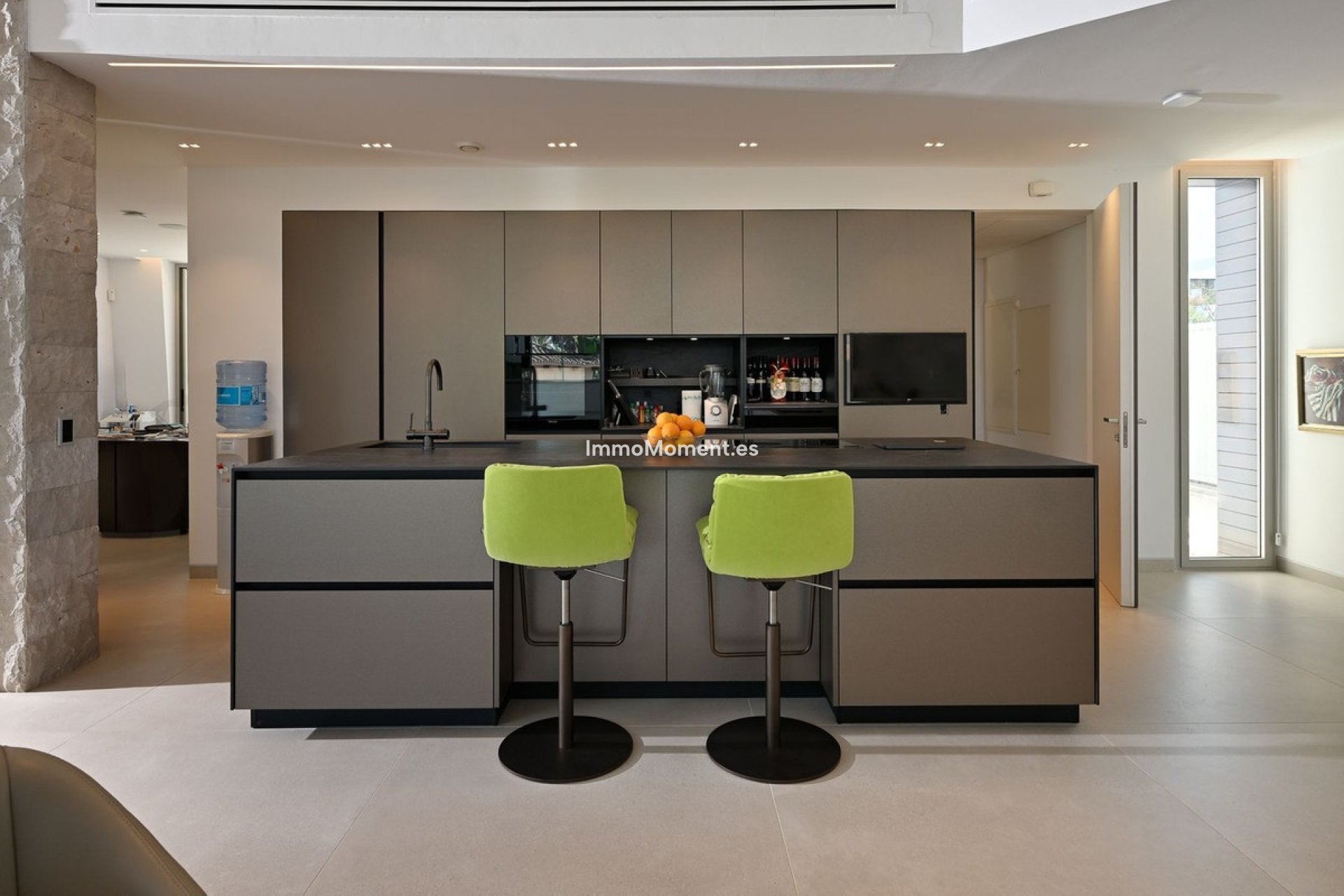 Die untere Etage bietet drei weitere Schlafzimmer, jedes mit eigenem Bad. Auf dieser Etage befindet sich auch ein vielseitiger offener Raum, der sich ideal als zweites Wohnzimmer, Büro oder Spielzimmer eignet, sowie eine Lounge und eine voll ausgestattete zweite Küche.