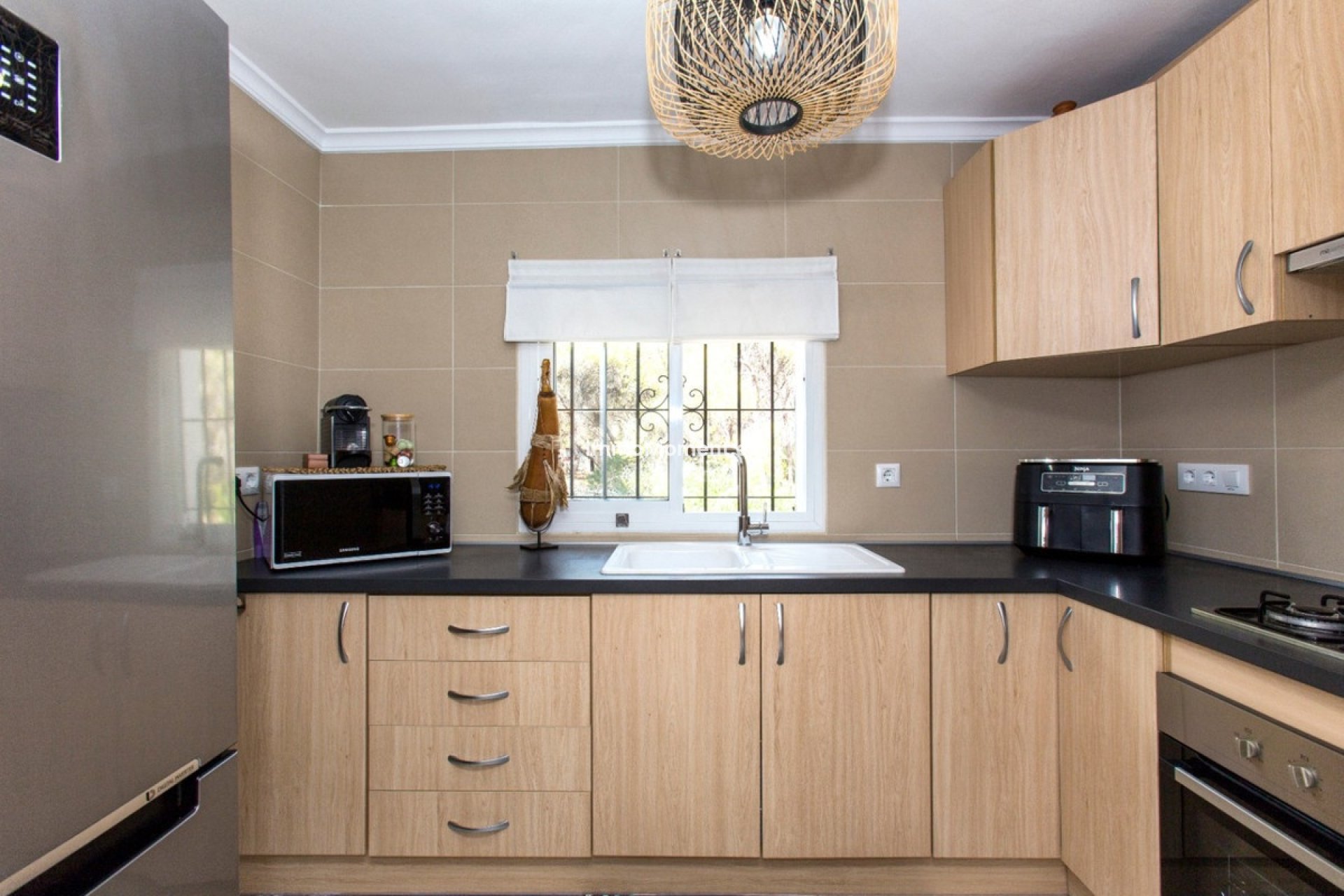 Im Außenbereich bietet das Grundstück einen 8 x 4 Meter großen automatisierten Salzwasserpool mit Terrasse, einen Whirlpool, Aussendusche warm/kalt, eine Sommerküche mit einer 37m2 grossen überdachten Terrasse beim Pool, und mehrere gemütliche Sitz- und Ess-Ecken. Es gibt einen 20m2 grossen separaten klimatisierten Raum geeignet für ein Büro oder Fitnessraum. Der Garten ist grün und pflegeleicht angelegt, mit Obstbäumen und anderen Pflanzen, mit einer schönen Nachtbeleuchtung. Das Haus verfügt über einen Carport, Parkplatz für mehrere Fahrzeuge oder Wohnmobil und einen geräumigen Abstellraum.