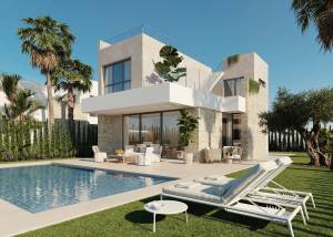 Das Außendesign dieser freistehenden Häuser in Finestrat ist darauf ausgelegt, den Genuss der natürlichen Umgebung zu maximieren. Jede Immobilie verfügt über einen privaten Garten, ideal, um einen persönlichen grünen Raum zu schaffen oder Momente im Freien mit der Familie zu genießen. Die großzügigen Terrassen bieten einen perfekten Ort zum Entspannen, während man das Meer betrachtet, und werden zu einem idealen Treffpunkt während der warmen Sommernächte. Darüber hinaus bietet das Solarium einen zusätzlichen Bereich zum Sonnenbaden oder einfach zum Genießen der Panoramaaussicht. Die Nähe zum Meer und zum Golfplatz verleiht diesen Immobilien zusätzlichen Wert und ermöglicht einen aktiven und gesunden Lebensstil.