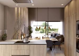 Das Innere der Häuser ist mit einem Fokus auf Funktionalität und Komfort gestaltet. Die Grundrissoptionen umfassen Häuser mit 2 und 3 Schlafzimmern, alle mit 2 Bädern, was sie sowohl für Familien als auch für Paare geeignet macht. Die Keramikböden verleihen einen modernen Touch und sind pflegeleicht. Die Häuser sind mit Fußbodenheizung ausgestattet, die in den kälteren Monaten für eine warme Umgebung sorgt. Einbauschränke bieten effizienten Stauraum, während die Vorinstallation der Klimaanlage eine zusätzliche Anpassung des Innenklimas ermöglicht. Die Einbeziehung einer Garage bietet Komfort und Sicherheit für Fahrzeuge.