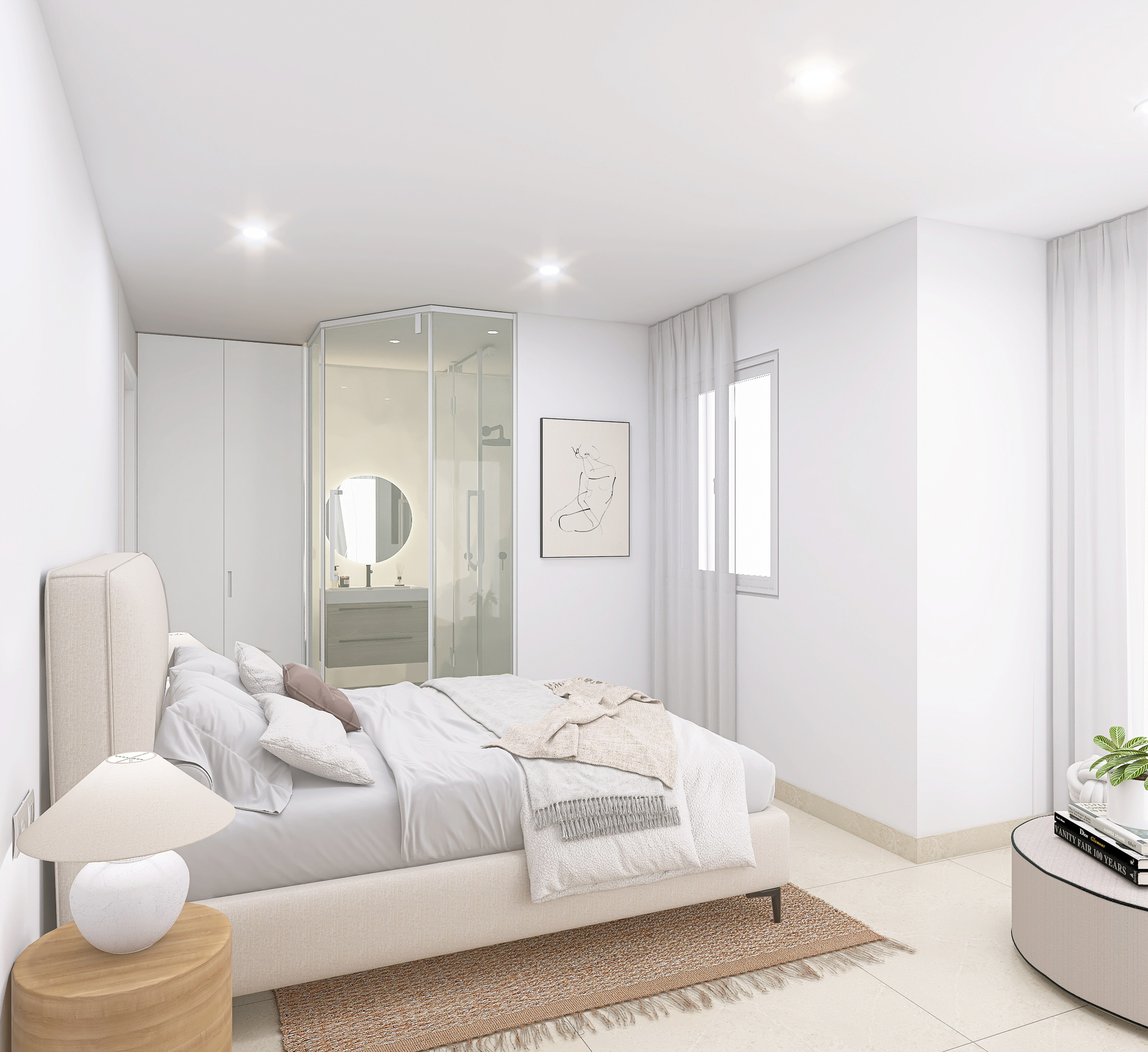 Das Innere der Reihenhäuser ist darauf ausgelegt, maximalen Komfort und Funktionalität zu bieten. Mit vier Schlafzimmern und drei Bädern sind diese Häuser ideal für Familien oder für diejenigen, die zusätzlichen Platz für Gäste benötigen. Die Böden aus Feinsteinzeug verleihen einen modernen Touch und sind pflegeleicht. Die Häuser sind komplett möbliert und mit Geräten ausgestattet, was den Umzug und den Start in ein neues Leben erleichtert. Einbauschränke bieten effizienten Stauraum und halten die Räume ordentlich und frei von Unordnung. Darüber hinaus verfügt jedes Reihenhaus über eine Garage, die einen sicheren Platz für das Fahrzeug und zusätzlichen Stauraum bietet.