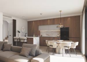 The interior of these homes reflects a modern and functional design. With three bedrooms and three bathrooms, each space has been optimized to offer comfort and style. The porcelain tile floors provide an elegant and durable finish. The homes are equipped with high-quality appliances, built-in wardrobes, and electric shutters, making daily life easier. The pre-installation of air conditioning ensures a pleasant environment throughout the year, while the video intercom adds an extra level of security and convenience.