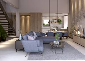 The interior of these villas at La Finca Golf is designed to offer maximum comfort and functionality. Each villa features air conditioning, ensuring a pleasant environment year-round. Electric shutters add an additional level of convenience and security. The built-in wardrobes in the bedrooms provide ample storage space, keeping the design clean and tidy. The layout includes a private garage, ensuring a secure parking space. Additionally, the solarium offers extra space to enjoy the sun and panoramic views of the surroundings.