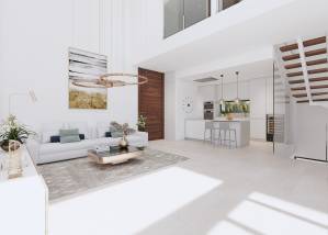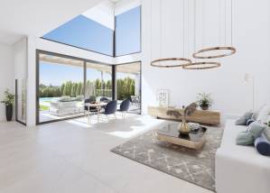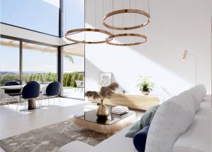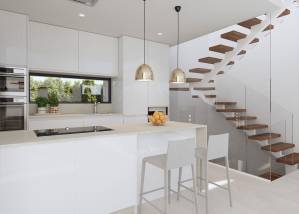 The interiors of these homes in Finestrat are carefully designed to offer maximum comfort and functionality. Layout options include properties with 3 or 4 bedrooms and 3 or 4 bathrooms, adapting to the needs of each family. Ceramic floors provide a modern touch and are easy to maintain. The homes are equipped with air conditioning and smart home technology, allowing for efficient home control. Electric shutters and high-quality appliances complete a set of features that ensure a comfortable and modern living experience. Built-in wardrobes offer additional storage space, maintaining the home's order and aesthetics.