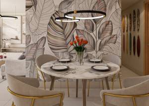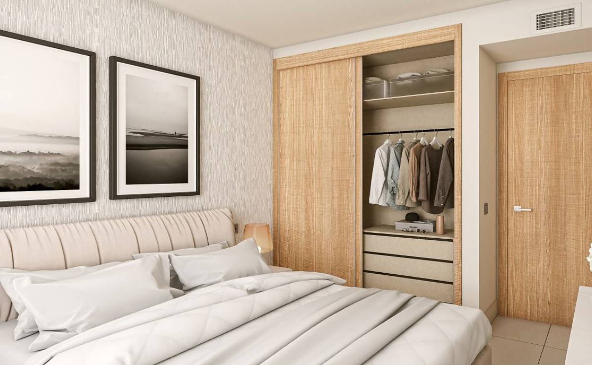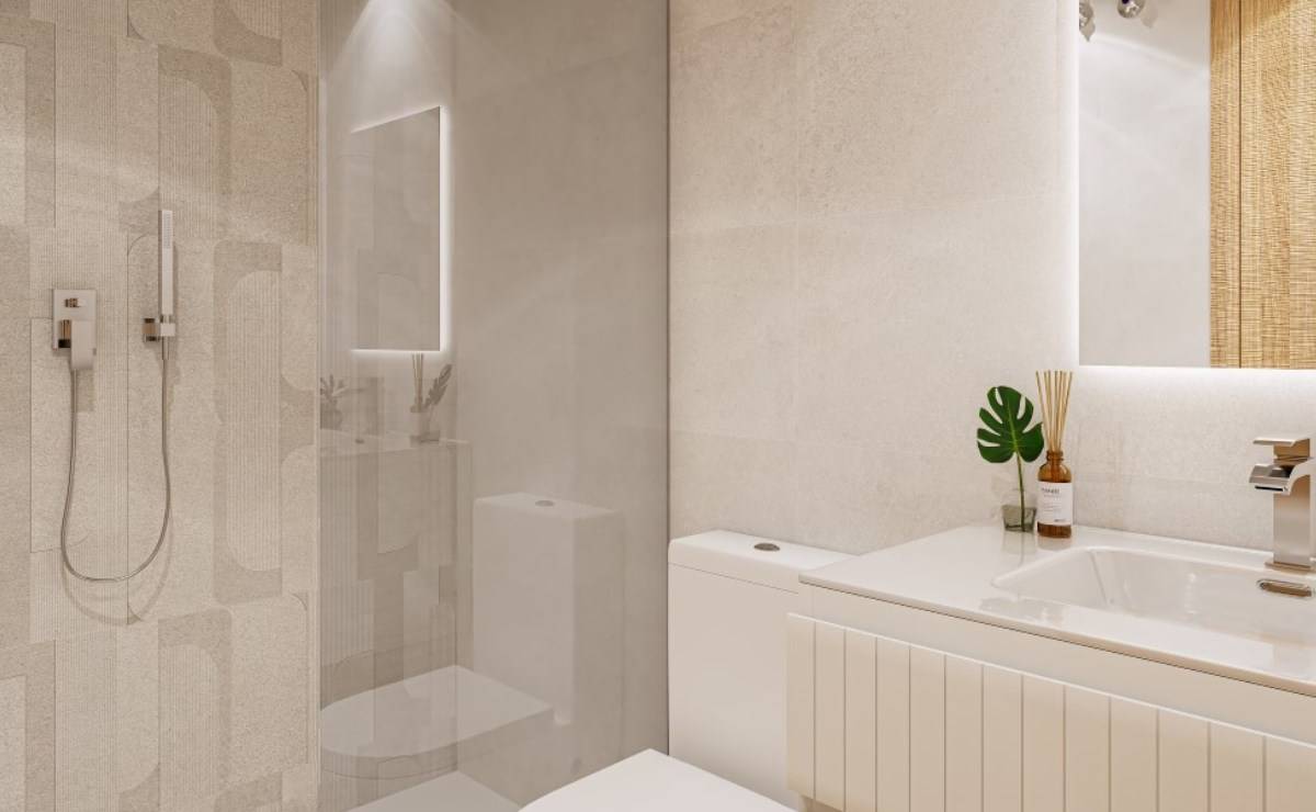 The interiors of the residences have been carefully designed to offer a cozy and functional space. With options of 2 and 3 bedrooms, each property includes 2 bathrooms, ensuring comfort for families of different sizes. Built-in wardrobes optimize storage space, while high-quality appliances facilitate daily tasks. Porcelain flooring adds a touch of elegance and durability, complementing the modern and efficient design of each unit. The integration of advanced technology, such as the video intercom and electric blinds, ensures a safe and comfortable environment.
