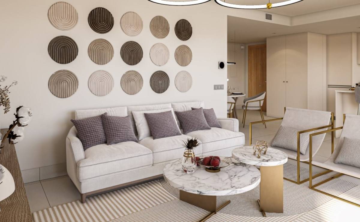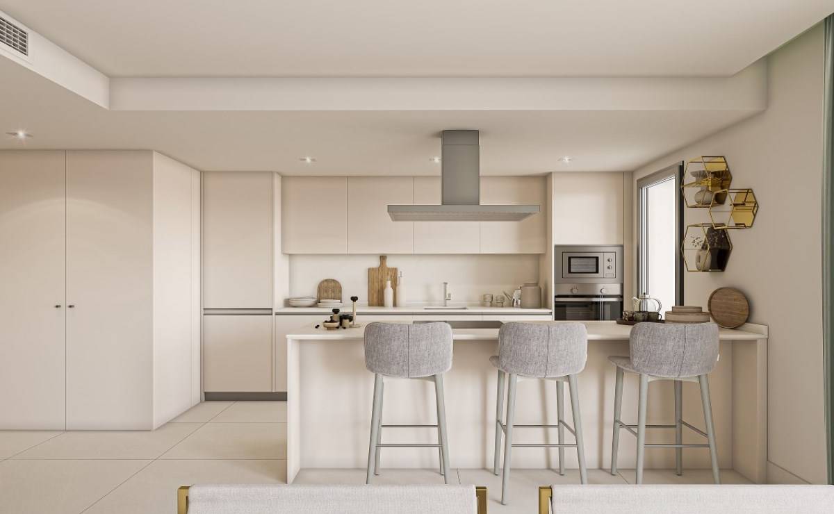 The exteriors of this residential complex in Manilva have been designed to complement the natural surroundings and offer an outdoor lifestyle. All properties feature terraces that allow residents to enjoy sea views and the Mediterranean climate. Additionally, the ground floors have direct access to the communal gardens, while the penthouses offer private solariums, ideal for relaxing or entertaining guests. The inclusion of electric car chargers in the garages reflects a commitment to sustainability and modernity, ensuring residents' mobility needs are met.
