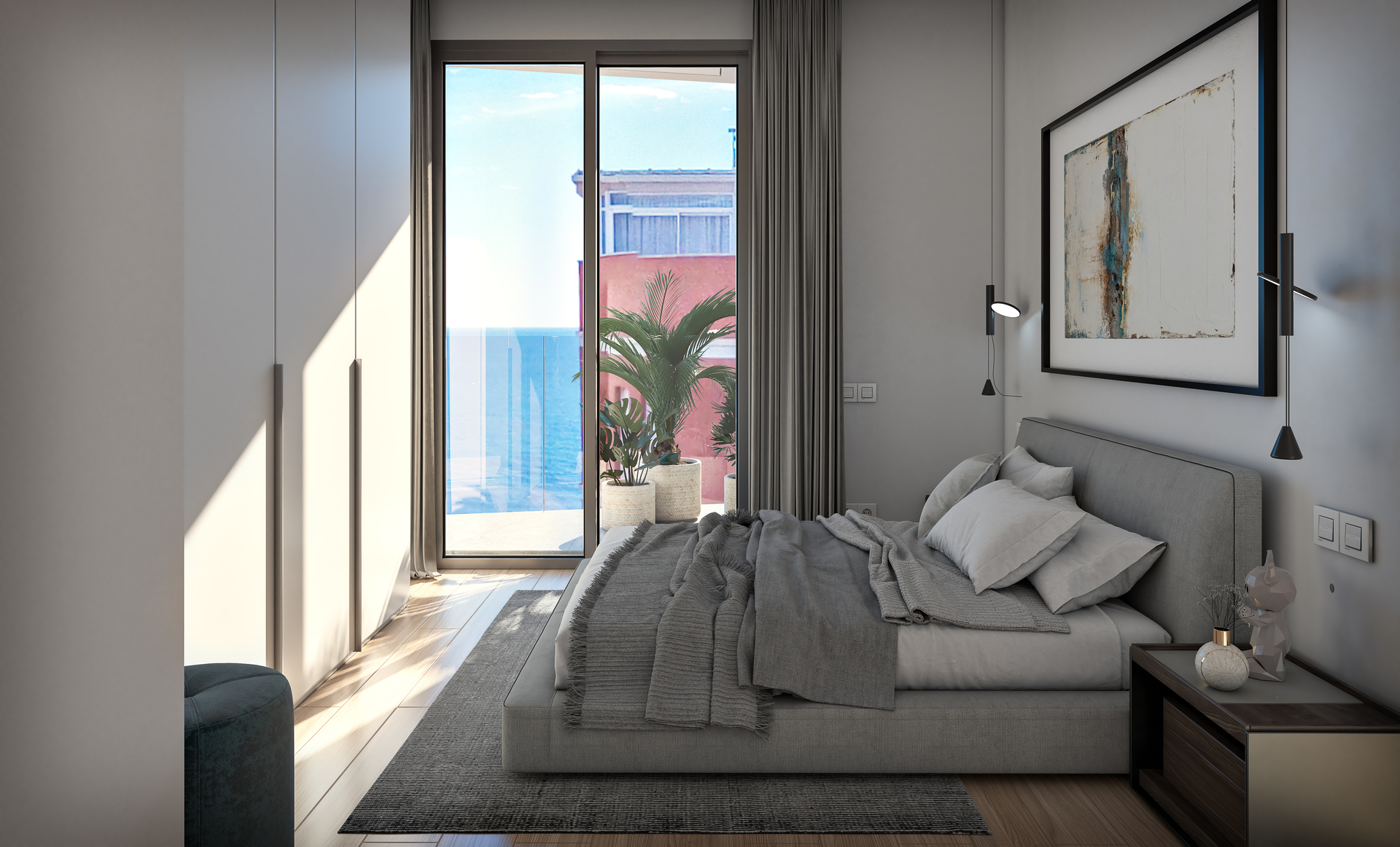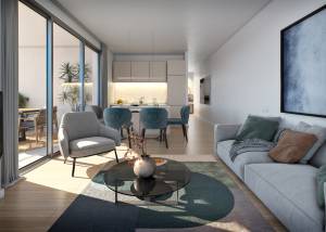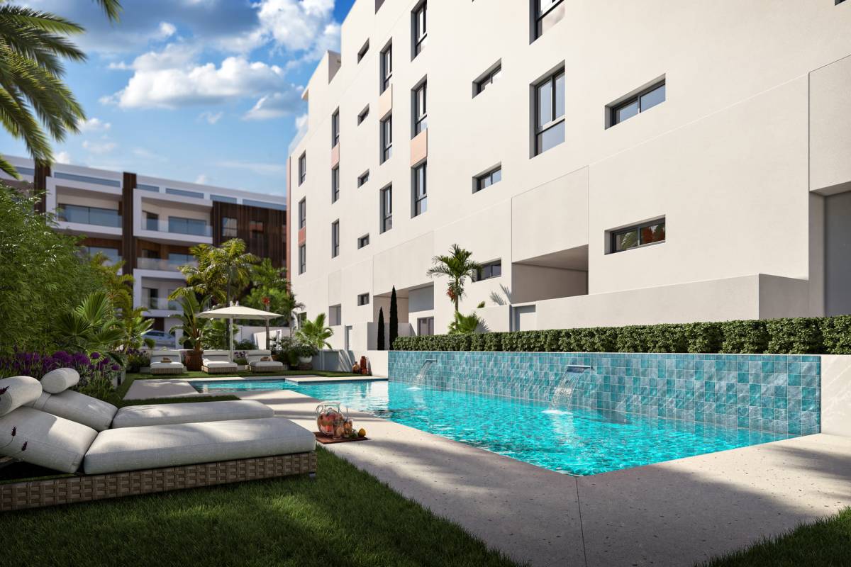 The interiors of the apartments and penthouses are designed to offer a modern and cozy atmosphere. The homes feature two bedrooms and two bathrooms, ensuring space and privacy for all family members. The flooring combines tiles and laminate, adding a touch of elegance and warmth. The kitchen is equipped with state-of-the-art appliances, facilitating daily tasks. Comfort is assured with the installation of air conditioning and electric blinds, while built-in wardrobes offer practical and efficient storage solutions. Security and comfort are enhanced with the inclusion of a video intercom.