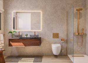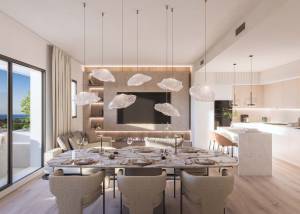 The exteriors of these homes are designed to make the most of the Mediterranean climate. Each property features a private terrace, ideal for enjoying the views and the outdoors. Ground floors offer the added advantage of a private garden, while penthouses include a solarium, perfect for sunbathing in the privacy of your home. Additionally, all homes come with a garage, adding convenience and security to daily life. The proximity to the sea, just 400 meters away, allows for coastal walks and water activities at any time.