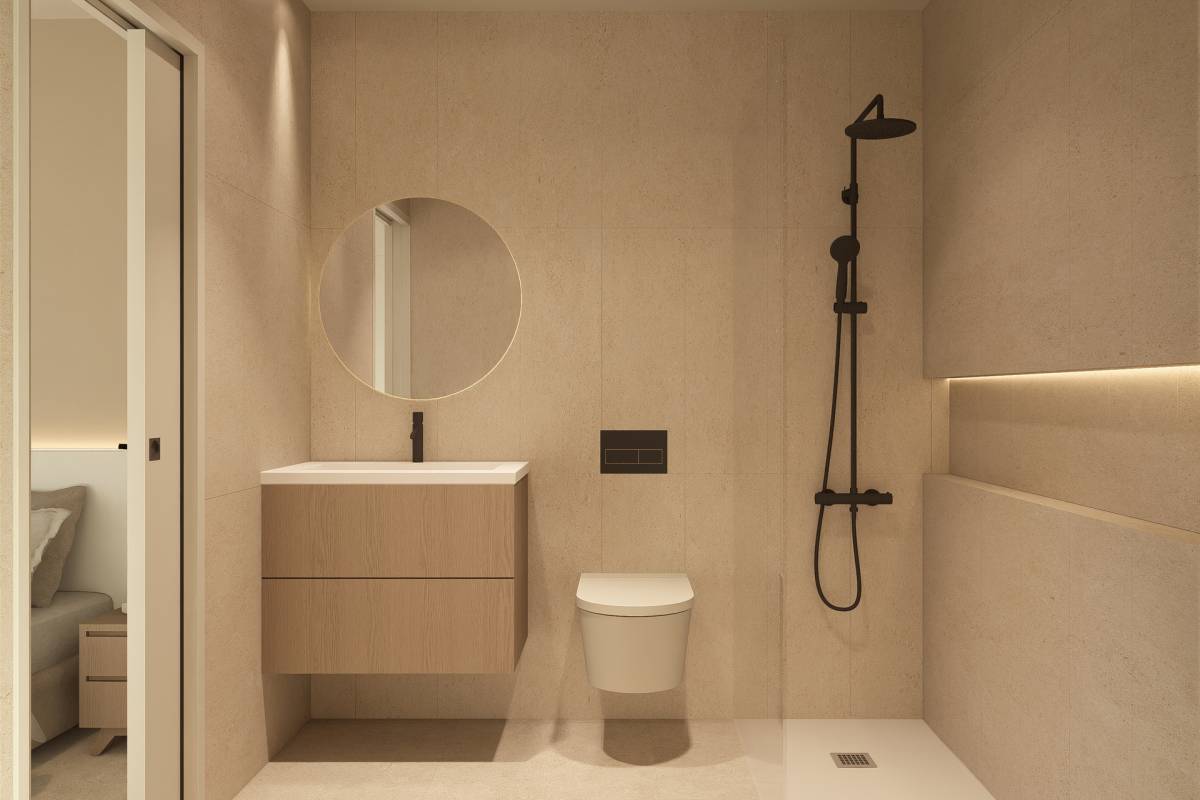 The exterior of these detached homes in Torre-Pacheco is designed to enjoy the Mediterranean climate. Each property features a private garden, ideal for relaxation or outdoor activities. Additionally, the homes include a terrace, perfect for outdoor dining or simply enjoying the views. A solarium complements the outdoor spaces, offering an additional place for sunbathing or creating a personalized relaxation area. The presence of a private pool in each home adds a touch of luxury and exclusivity, allowing for refreshing dips on hot days without leaving home.