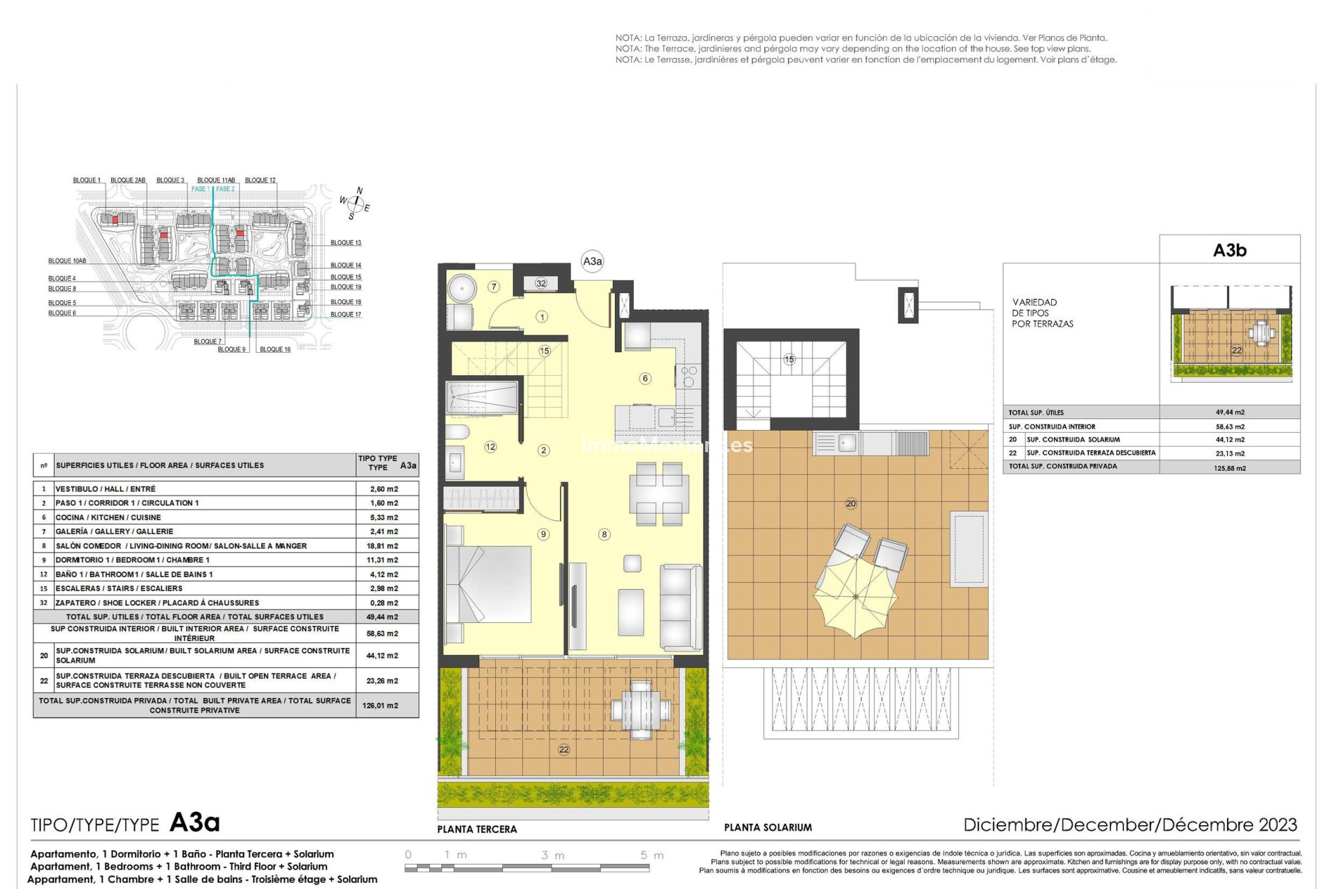 Los exteriores de estas viviendas están diseñados para maximizar el confort y el disfrute del clima mediterráneo. Muchas propiedades cuentan con terrazas y jardines privados, ideales para relajarse o disfrutar de comidas al aire libre. Además, algunas viviendas ofrecen soláriums, perfectos para tomar el sol en privacidad. La presencia de piscinas privadas en ciertas tipologías añade un toque de lujo y exclusividad. Las propiedades también están equipadas con pérgolas, que proporcionan sombra y estilo a los espacios exteriores. La opción de cargar vehículos eléctricos es un añadido moderno que refleja un compromiso con la sostenibilidad.