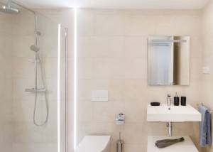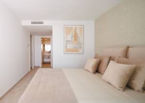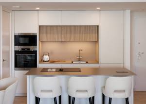 Los interiores de estos apartamentos están cuidadosamente diseñados para ofrecer un espacio acogedor y funcional. Los suelos de gres porcelánico no solo aportan un toque de elegancia, sino que también son prácticos y fáciles de mantener. Los armarios empotrados en los dormitorios proporcionan un amplio espacio de almacenamiento, manteniendo el orden y la estética del hogar. La distribución incluye opciones de 2 o 3 dormitorios, todos con 2 baños, lo que garantiza comodidad y privacidad para todos los miembros de la familia. Además, cada apartamento cuenta con un garaje privado, añadiendo un nivel extra de conveniencia para los residentes.