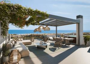 Los exteriores de estas propiedades están pensados para ofrecer el máximo disfrute del clima mediterráneo. Todas las viviendas cuentan con terrazas, ideales para relajarse y disfrutar de las vistas al mar. Además, algunas tipologías incluyen jardines privados, perfectos para quienes buscan un espacio verde personal. Los áticos disponen de solárium, proporcionando un espacio adicional al aire libre para tomar el sol o disfrutar de reuniones al aire libre. La cercanía al mar, a solo 1 km, permite disfrutar de la playa en cualquier momento.