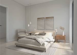 Los exteriores de estas propiedades están pensados para maximizar el disfrute del clima mediterráneo. Cada vivienda cuenta con una terraza privada, perfecta para relajarse al aire libre o disfrutar de comidas al fresco. Además, algunas tipologías incluyen un solárium, proporcionando un espacio adicional para tomar el sol o crear un jardín en altura. La ubicación privilegiada a solo 250 metros del mar permite disfrutar de paseos costeros y actividades acuáticas en cualquier momento. La arquitectura moderna y los acabados de calidad aseguran que cada hogar se integre armoniosamente con su entorno, ofreciendo un refugio tranquilo y elegante.