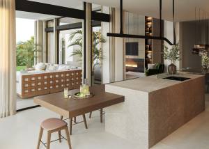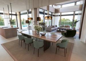 À l'intérieur, la villa est équipée de caractéristiques haut de gamme garantissant un confort et une fonctionnalité maximaux. Les sols en grès cérame apportent une touche moderne et élégante aux espaces. La propriété comprend un chauffage par le sol, assurant une température agréable toute l'année. De plus, elle dispose d'un système de domotique permettant de contrôler divers aspects de la maison de manière efficace. Les appareils électroménagers sont inclus, facilitant la vie quotidienne, et les placards intégrés offrent un rangement optimal dans les chambres.