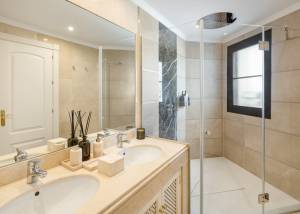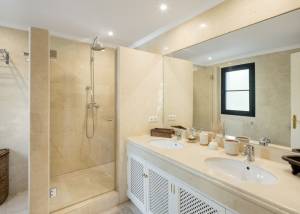 L'extérieur de la villa est conçu pour maximiser le plaisir du climat méditerranéen. Il se distingue par la présence d'un jardin privé, idéal pour des moments de détente en plein air. La terrasse est un espace parfait pour profiter de repas en plein air ou simplement contempler l'environnement naturel qui entoure la propriété. De plus, la villa dispose d'une piscine privée, offrant un oasis personnel pour se rafraîchir pendant les chaudes journées d'été. Le design extérieur complète parfaitement le style architectural de la villa, créant une harmonie visuelle qui s'intègre au paysage de Benahavís.