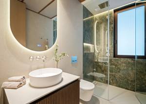 Les zones communes de la résidence comprennent des espaces paysagers offrant un environnement vert et relaxant. Les résidents peuvent profiter d'une piscine communautaire et d'une salle de sport, offrant des options supplémentaires pour l'exercice et le bien-être. Ces installations sont conçues pour compléter le style de vie exclusif offert par les villas, garantissant que tous les besoins de loisirs et de santé sont couverts.