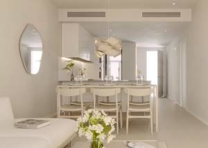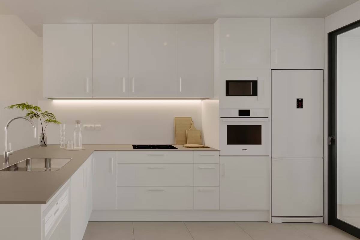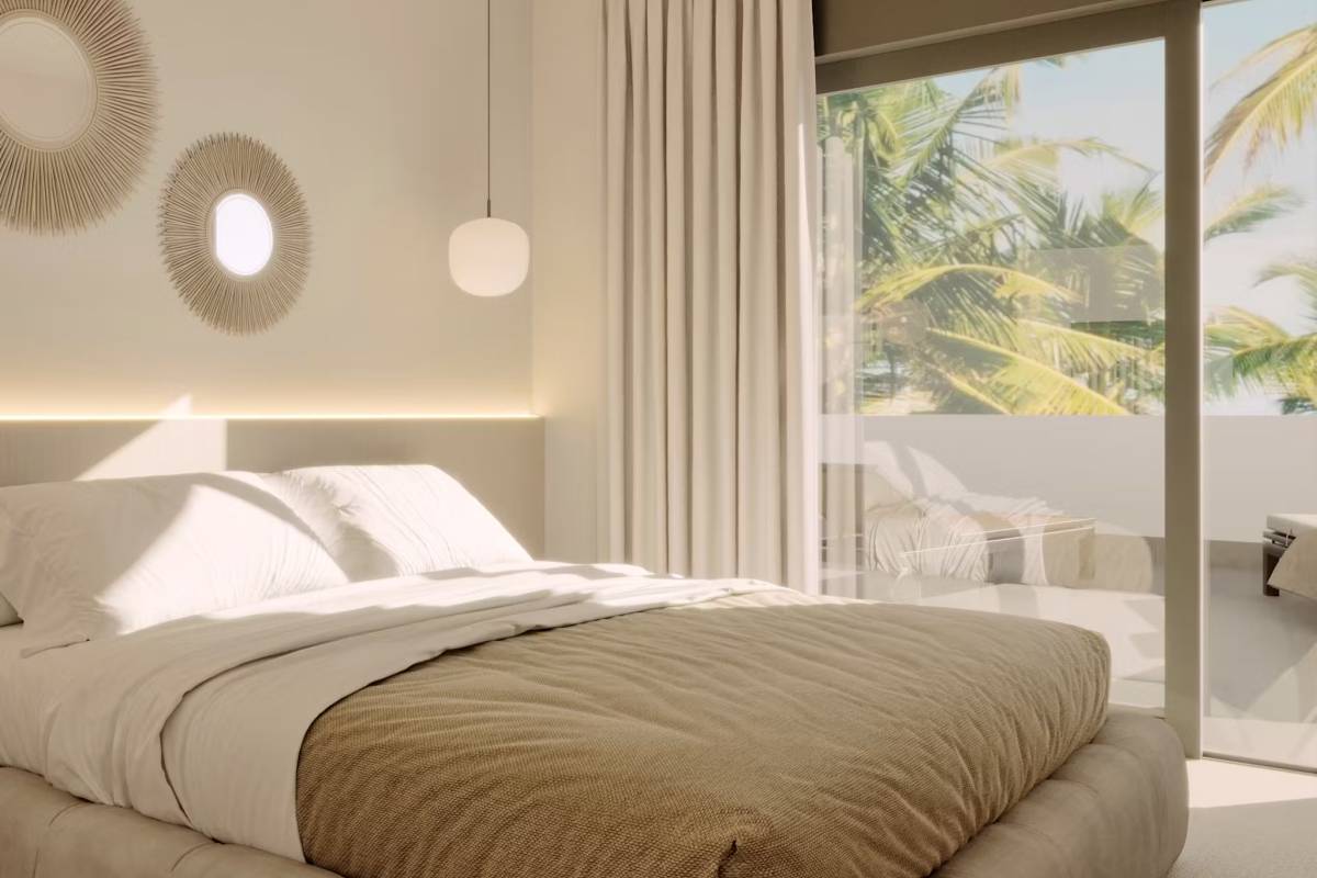L'intérieur des logements est conçu pour offrir un maximum de confort et de fonctionnalité. Les sols en grès cérame apportent une touche d'élégance et sont faciles à entretenir. Toutes les propriétés sont équipées de la climatisation, assurant une ambiance agréable tout au long de l'année. Les appareils modernes facilitent la vie quotidienne, tandis que les placards intégrés offrent un rangement efficace et ordonné. La distribution des logements est pensée pour optimiser l'espace, avec de vastes espaces de vie qui s'intègrent parfaitement aux terrasses, créant un flux continu entre l'intérieur et l'extérieur.