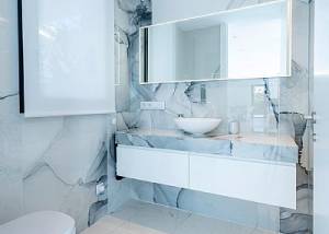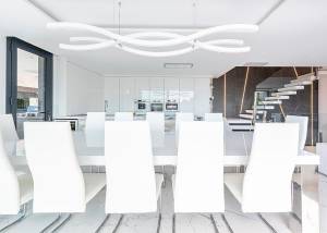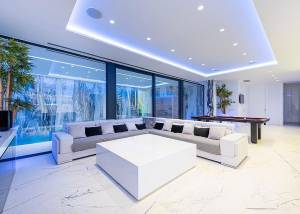 L'intérieur de la villa est équipé de caractéristiques de luxe garantissant un confort maximal. Les sols en marbre ajoutent une touche d'élégance, tandis que le chauffage par le sol assure une température agréable toute l'année. La villa est entièrement meublée et équipée d'appareils haut de gamme, facilitant un déménagement sans tracas. Les volets électriques et le système domotique offrent un confort et une sécurité supplémentaires. De plus, la climatisation assure un environnement frais et confortable pendant les mois les plus chauds. Les placards intégrés dans les chambres offrent un espace de rangement généreux.