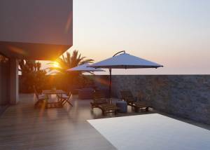 Le design extérieur des villas comprend un jardin privé qui offre un espace parfait pour profiter de l'air libre. La terrasse est idéale pour se détendre ou organiser des réunions en plein air. De plus, chaque villa dispose d'un solarium, offrant un espace supplémentaire pour profiter du soleil et des vues environnantes. La présence d'un garage assure confort et sécurité pour le stationnement des véhicules.