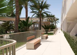 De woningen beschikken over buitenruimtes die zijn ontworpen om optimaal te genieten van het mediterrane klimaat. De begane grond biedt privé tuinen, perfect om een persoonlijke oase van rust te creëren. De penthouses beschikken over een solarium, dat extra ruimte biedt voor ontspanning en buitenentertainment. Alle woningen hebben terrassen, ideaal om te genieten van het uitzicht en de frisse lucht. Bovendien heeft elke woning een garage, wat comfort en veiligheid voor de bewoners garandeert.