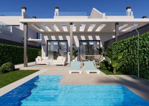 De buitenruimtes van deze rijtjeshuizen zijn ontworpen om een uitzonderlijke buitenlevensstijl te bieden. Elke woning heeft een privé tuin, ideaal om te ontspannen of buitenactiviteiten te ondernemen. Daarnaast beschikken ze over een terras en een solarium, perfect om te genieten van het zonnige klimaat van de regio. De toevoeging van een privézwembad in elk rijtjeshuis biedt een exclusieve ruimte om af te koelen en van de zomer te genieten in volledige privacy.