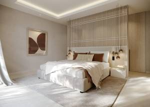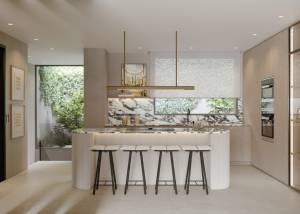Het interieur van deze rijtjeshuizen is ontworpen om maximaal comfort en moderniteit te bieden. Met drie slaapkamers en drie badkamers is elke woning uitgerust met porseleinen tegelvloeren die een elegante en onderhoudsvriendelijke uitstraling geven. Elektrische rolluiken en het domoticasysteem verbeteren het comfort en de energie-efficiëntie. De keuken is uitgerust met moderne apparatuur en de airconditioning zorgt voor een aangename sfeer gedurende het hele jaar. Ingebouwde kasten bieden veel opbergruimte, terwijl vloerverwarming warmte biedt in de koudere maanden.