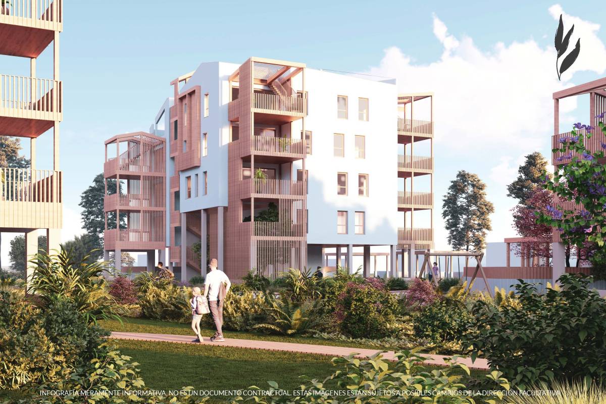 De buitenruimtes van deze woningen zijn zorgvuldig ontworpen om optimaal te genieten van de natuurlijke omgeving. Elke woning heeft een privéterras, ideaal om te ontspannen en te genieten van het uitzicht op zee. Bovendien bieden de penthouses een dakterras, dat extra buitenruimte biedt voor recreatie of contemplatie. De ligging op slechts een kilometer van de zee stelt bewoners in staat om gemakkelijk te genieten van kustwandelingen en buitenactiviteiten. De integratie van elementen zoals elektrische rolluiken en de pre-installatie voor het opladen van elektrische auto's onderstreept de toewijding aan duurzaamheid en modern comfort.