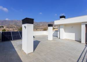 De buitenruimtes van deze eigendommen zijn ontworpen om optimaal te genieten van het mediterrane klimaat. Elke bungalow heeft een privéterras, ideaal om buitenmomenten te beleven, of het nu is om te ontspannen of om te socializen met vrienden en familie. Bovendien biedt het solarium extra ruimte om te zonnebaden of gewoon te genieten van het panoramische uitzicht op de omgeving. De architectuur van de bungalows integreert harmonieus met het landschap en biedt een perfecte balans tussen design en natuur.