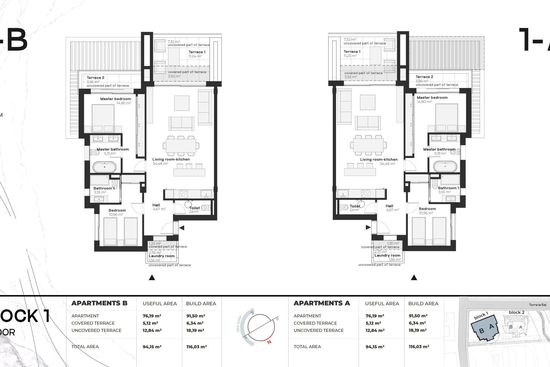The exteriors of this residential complex in Buenas Noches are designed to maximize enjoyment of the Mediterranean climate. Each property features a private terrace, perfect for relaxing and enjoying the sea views. Additionally, some types include a solarium, offering additional outdoor space for leisure and entertainment. The presence of pergolas adds a touch of elegance and functionality, providing shade and style to the outdoor areas. The communal gardens are carefully maintained, offering a green and welcoming environment for all residents.
