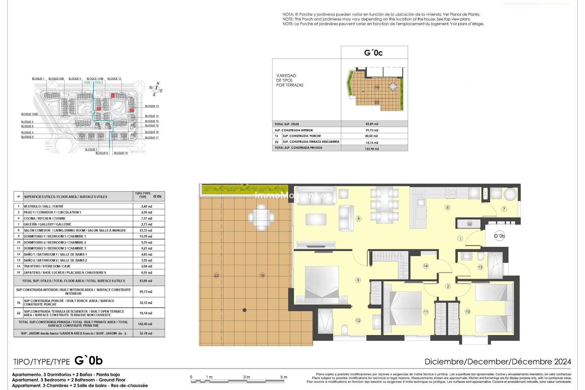 The interior of the homes is designed to offer maximum comfort and functionality. Layout options include homes with 1 to 3 bedrooms and 1 to 3 bathrooms, adapting to different family needs. All properties are equipped with air conditioning and underfloor heating, ensuring a pleasant environment throughout the year. Built-in wardrobes optimize storage space, while included appliances and furniture facilitate a hassle-free move. The use of ceramic flooring adds a touch of elegance and durability to the interiors.