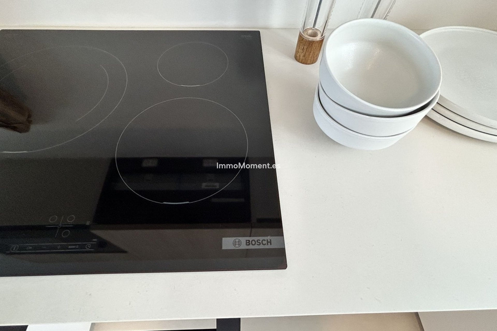 It features a home automation system and smoke detectors, as well as Jung appliances. The modern and functional kitchen features high and low cabinetry, a Silestone countertop, and paneled appliances with an A energy rating (hob, oven, microwave, extractor hood, refrigerator, dishwasher, and washer-dryer). The bathrooms feature wall-hung toilets, extra-flat shower trays with screens, and the master bathroom features a double sink with integrated cabinetry.
