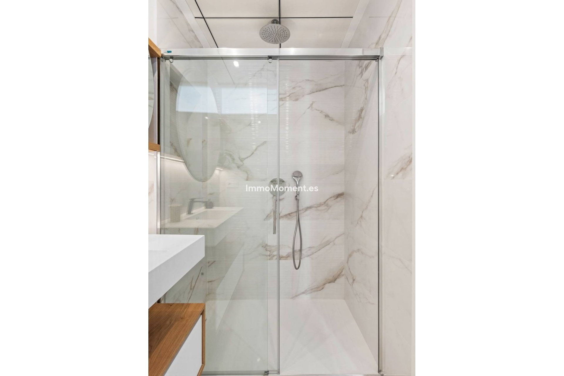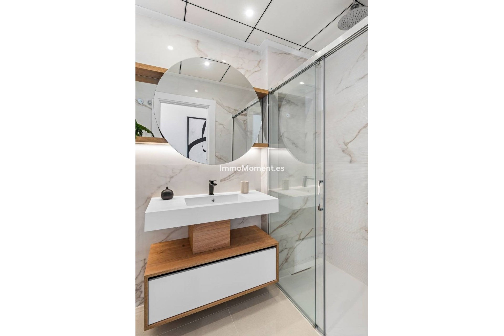 Each bedroom is designed for comfort, with built-in wardrobes and large windows that fill the rooms with natural light. The bathrooms are stylish and contemporary, featuring marble-effect finishes and high-quality fixtures.
