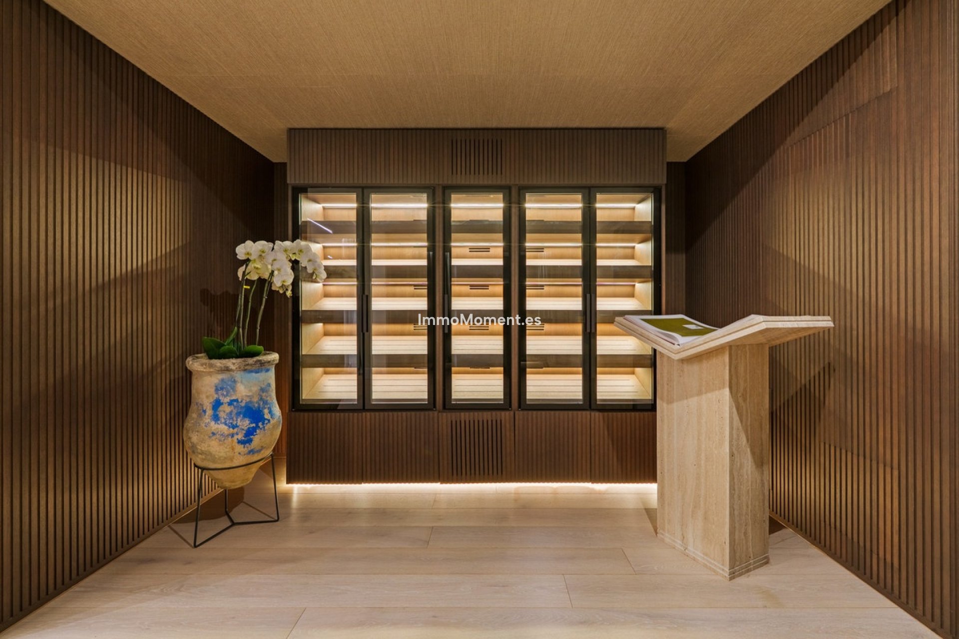 Set within a gated community with armed security, a rare authorisation in Spain, and a response time of under five minutes, the house is designed for someone who values privacy yet expects convenience. The layout is clear and deliberate. Private quarters sit above, social spaces unfold at garden level. The master suite occupies its own domain with dressing room and library. On the ground floor, the living areas balance formal and informal use without excess. How often do you find a home that allows proper entertaining while still feeling comfortable on an ordinary weekday? Large openings draw you towards the terraces and pool, where panoramic views remain uninterrupted.