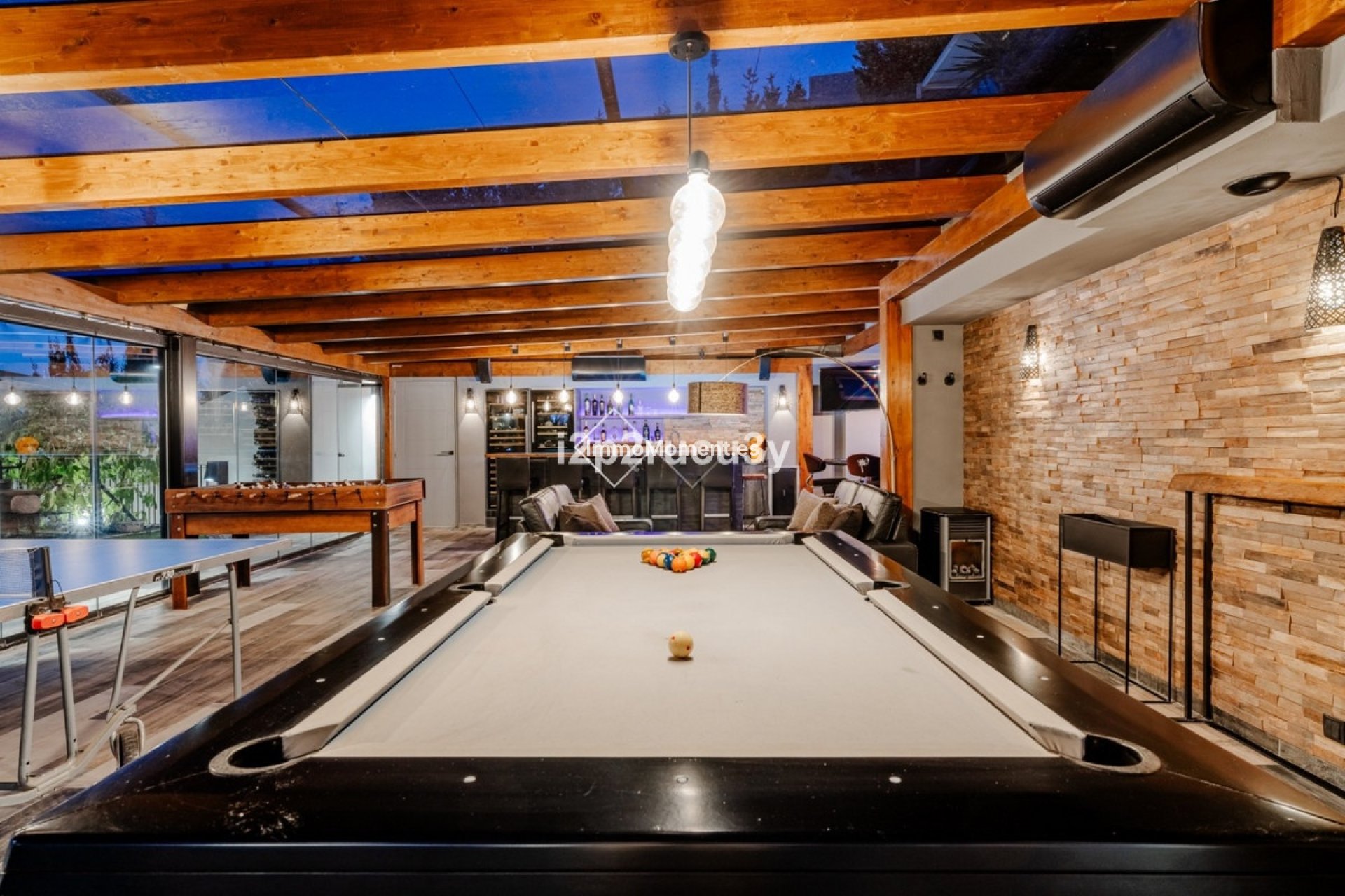Die komplette Entertainment-Lounge mit Pokertisch, SEGA-Arcade-Automaten, Surround-Sound-System und bodentiefen Glaswänden sowie weiteren Annehmlichkeiten verwischt die Grenzen zwischen Innen- und Außenbereich und rahmt außergewöhnliche Meerblicke aus fast jedem Winkel dieses atemberaubenden Refugiums ein. Ein separater Technikraum mit neuer Pumpe sorgt für eine optimale Poolpflege.