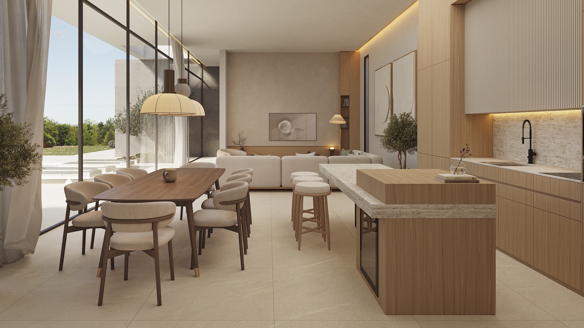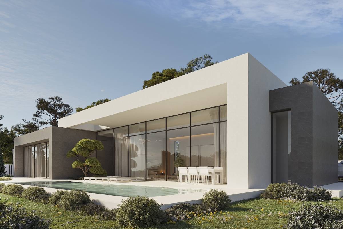 Im Inneren ist die Villa so gestaltet, dass sie maximalen Komfort bietet. Sie besteht aus drei Schlafzimmern und bietet einen gemütlichen Raum für die ganze Familie. Die zwei Bäder sind effizient verteilt, um den Bewohnern Komfort zu gewährleisten. Jeder Raum wurde durchdacht, um Funktionalität und Komfort zu bieten und eine einladende und moderne Atmosphäre zu schaffen.