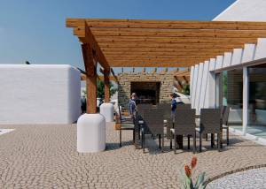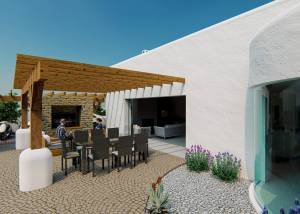 Der Außenbereich dieses freistehenden Chalets in Alfaz del Pi ist darauf ausgelegt, das mediterrane Klima optimal zu genießen. Es verfügt über einen wunderschönen Garten, ideal zum Entspannen oder für Aktivitäten im Freien. Die Terrasse ist ein perfekter Ort für Mahlzeiten im Freien oder einfach, um die Aussicht und die natürliche Umgebung zu genießen. Darüber hinaus umfasst die Immobilie einen privaten Pool, der an heißen Sommertagen eine persönliche Oase zum Erfrischen bietet. Die Pergola verleiht Eleganz und bietet Schatten, wodurch eine gemütliche Atmosphäre im Freien entsteht.