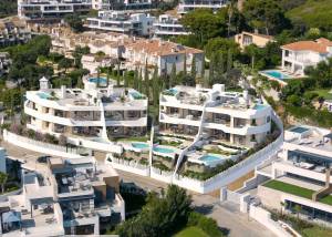 Die Außenbereiche dieser Immobilien zeichnen sich durch ihr modernes und funktionales Design aus. Jedes Reihenhaus verfügt über einen privaten Garten, ideal, um das mediterrane Klima zu genießen. Ein privater Pool verleiht einen Hauch von Exklusivität und ermöglicht es, sich im Komfort des eigenen Zuhauses zu erfrischen. Die Terrassen bieten zusätzlichen Raum für Freizeitaktivitäten im Freien, während das Solarium perfekt ist, um die Sonne zu genießen und den Meerblick zu bewundern. Die Nähe zum Meer und zum Golfplatz, beide nur 1 km entfernt, bietet eine privilegierte natürliche Umgebung für Outdoor-Aktivitäten.