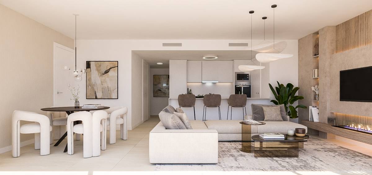 Die Wohnungen sind mit modernen Merkmalen ausgestattet, die Komfort und Funktionalität gewährleisten. Alle Immobilien verfügen über Einbauschränke, die effizienten und eleganten Stauraum bieten. Die Vorinstallation der Klimaanlage sorgt dafür, dass das Raumklima unabhängig von der Jahreszeit immer angenehm ist. Die Aufteilung der Wohnungen umfasst Optionen mit 2, 3 und 4 Schlafzimmern sowie 2 oder 3 Bädern, um den Bedürfnissen von Familien unterschiedlicher Größe gerecht zu werden. Darüber hinaus verfügt jede Wohnung über eine Garage, die Komfort und Sicherheit für die Bewohner gewährleistet.