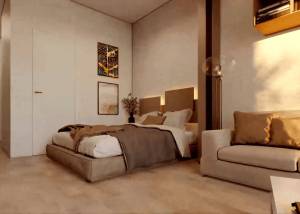 Das Innendesign dieser Immobilien konzentriert sich auf Komfort und Funktionalität. Alle Wohnungen verfügen über ein Schlafzimmer und ein Badezimmer, ideal für Paare oder Personen, die einen gemütlichen Raum suchen. Einbauschränke bieten effiziente Stauraumlösungen, die die Räume ordentlich und frei von Unordnung halten. Die Video-Gegensprechanlage ist eine Standardfunktion, die den Bewohnern Sicherheit und Ruhe bietet. Die Raumaufteilung ist darauf ausgelegt, eine gemütliche und praktische Umgebung zu bieten, die sich an die Bedürfnisse der Bewohner anpasst.