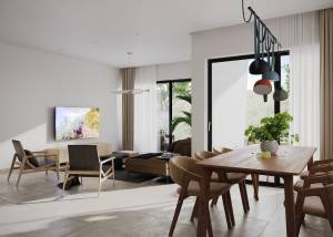 Das Innere dieser unabhängigen Häuser in Calpe ist so gestaltet, dass es maximalen Komfort und Funktionalität bietet. Die Böden aus Feinsteinzeug verleihen einen modernen Touch und sind pflegeleicht, ideal für den heutigen Lebensstil. Die Aufteilung umfasst drei Schlafzimmer und drei Badezimmer und bietet viel Platz und Komfort für die ganze Familie. Die Häuser sind mit Klimaanlagen ausgestattet, die das ganze Jahr über eine angenehme Atmosphäre gewährleisten. Einbauschränke bieten praktische und elegante Stauraumlösungen, während moderne Geräte den Alltag erleichtern. Darüber hinaus verfügt jede Immobilie über eine Garage, die den Bewohnern Komfort und Sicherheit bietet.
