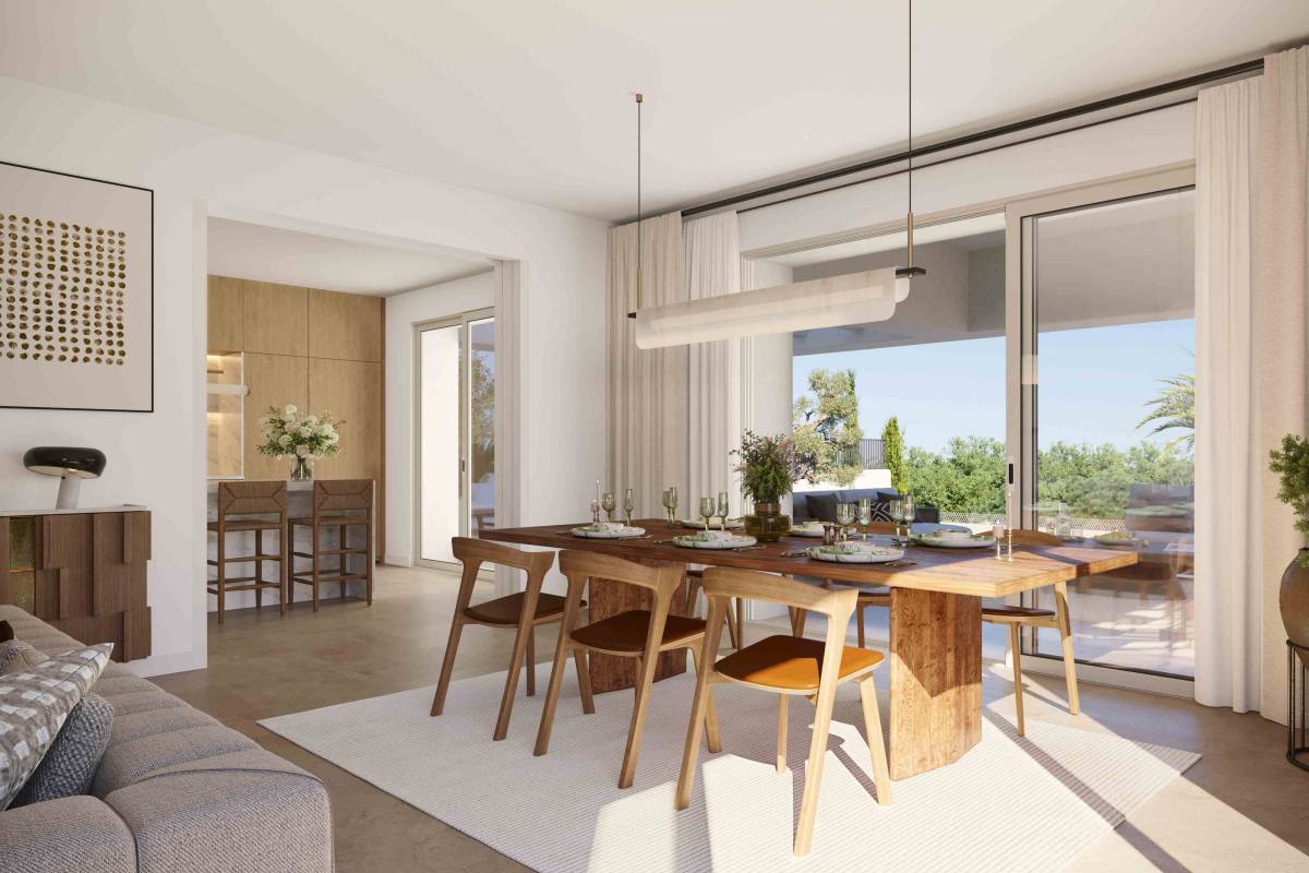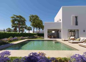The exteriors of these semi-detached homes are designed to maximize enjoyment of the Mediterranean climate. Each home features a private garden, perfect for relaxing or enjoying outdoor activities. Additionally, they have a terrace that offers extra space for leisure and entertainment. The inclusion of a private pool in each property allows for a refreshing swim in the privacy of your home. Proximity to the sea and golf course adds extra appeal for nature and sports enthusiasts.