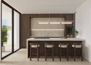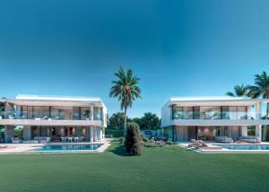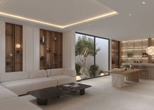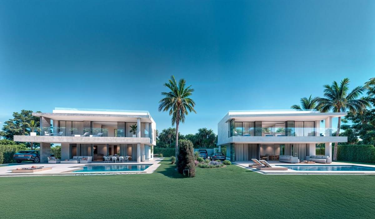 The exteriors of these villas are designed to enjoy the Mediterranean climate. Each property features a private garden, perfect for relaxing or enjoying outdoor activities. The terrace and solarium offer additional leisure spaces, while the pergola provides shade and an ideal spot for al fresco dining. Additionally, each villa has a private pool, allowing you to cool off and enjoy the sun in the comfort of your home. The proximity to the sea and golf adds extra value to the living experience in these villas.