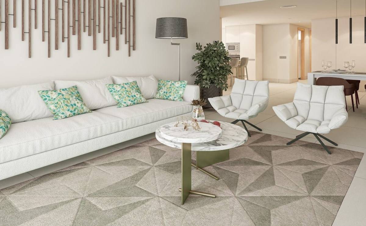 The interiors of the residences have been carefully designed to offer a cozy and functional space. With options of 2 and 3 bedrooms, each property includes 2 bathrooms, ensuring comfort for families of different sizes. Built-in wardrobes optimize storage space, while high-quality appliances facilitate daily tasks. Porcelain flooring adds a touch of elegance and durability, complementing the modern and efficient design of each unit. The integration of advanced technology, such as the video intercom and electric blinds, ensures a safe and comfortable environment.