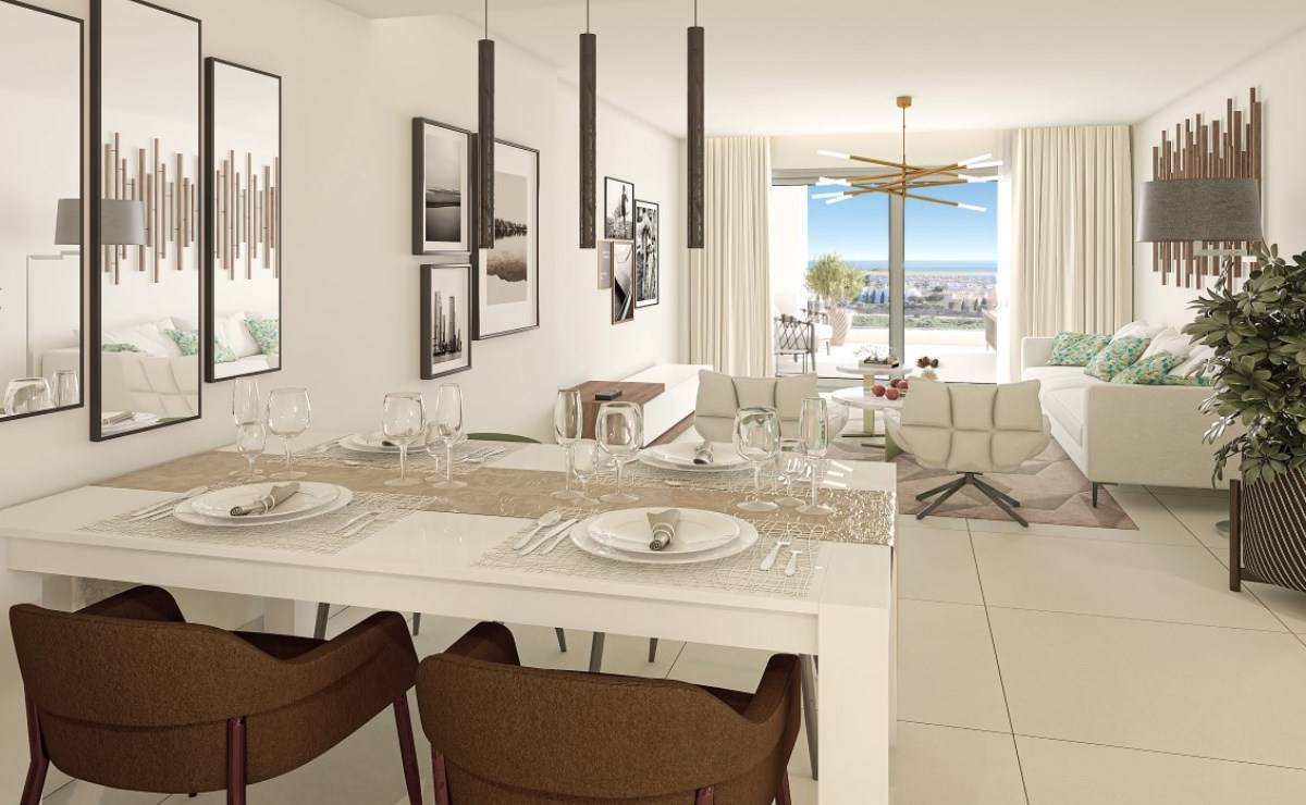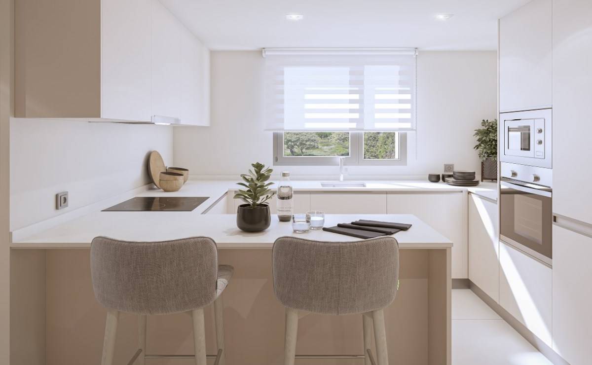 The exteriors of this residential complex in Manilva have been designed to complement the natural surroundings and offer an outdoor lifestyle. All properties feature terraces that allow residents to enjoy sea views and the Mediterranean climate. Additionally, the ground floors have direct access to the communal gardens, while the penthouses offer private solariums, ideal for relaxing or entertaining guests. The inclusion of electric car chargers in the garages reflects a commitment to sustainability and modernity, ensuring residents' mobility needs are met.