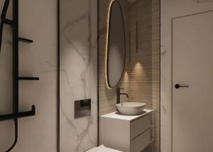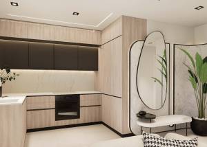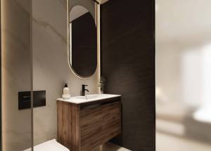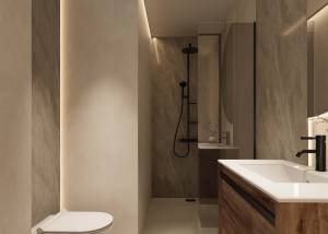 The exteriors of these bungalows are designed to maximize enjoyment of the Mediterranean climate. Each property features a private garden, perfect for creating a personal green space or enjoying outdoor moments. Additionally, the terraces offer an ideal place to relax or share with friends and family. For those seeking panoramic views, the high-bungalows include a solarium, providing additional space for leisure and relaxation. The proximity to the sea adds special value, allowing enjoyment of the sea breeze and beach walks just one kilometer away.