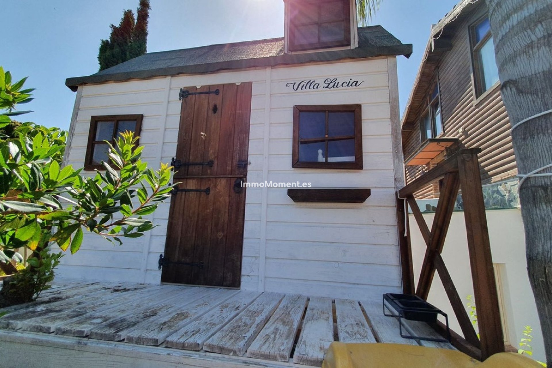 La primera casa, de encantador diseño en madera, dispone de un baño y tres dormitorios, además de una amplia sala de estar, cocina, terraza y zona de barbacoa.
