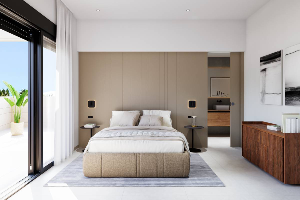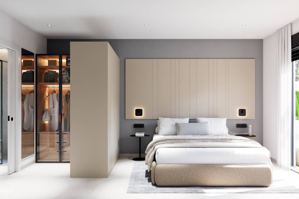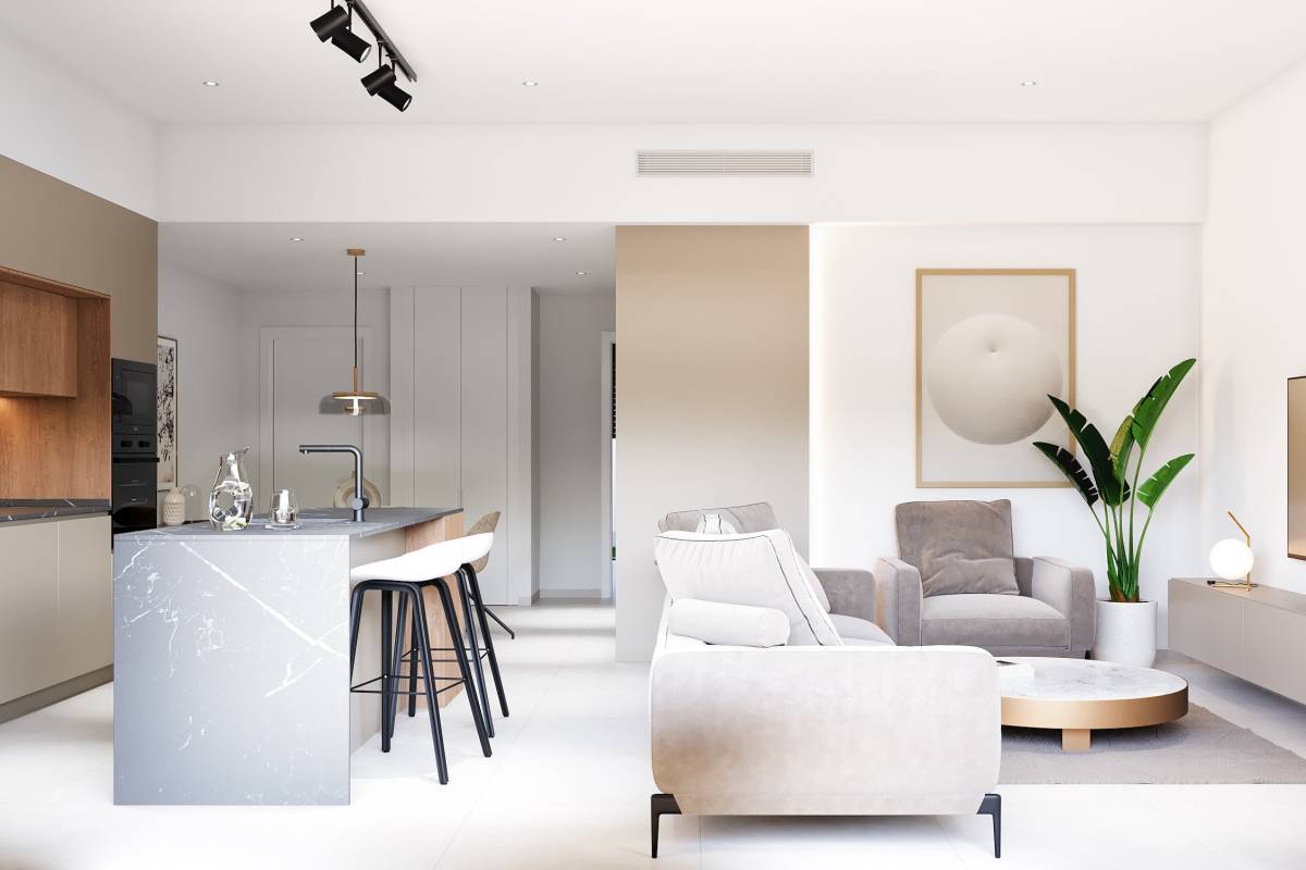 El interior de las viviendas está diseñado para ofrecer comodidad y estilo. Los suelos de gres porcelánico aportan un toque moderno y elegante a cada espacio. Las propiedades están equipadas con electrodomésticos de alta calidad y cuentan con aire acondicionado, asegurando un ambiente confortable durante todo el año. Las persianas eléctricas y los armarios empotrados son características estándar que añaden funcionalidad y conveniencia. Además, la preinstalación de aire acondicionado permite una personalización adicional según las necesidades del propietario. Las opciones de distribución incluyen viviendas de 2 y 3 dormitorios, así como 2 o 3 baños, adaptándose a diferentes estilos de vida y preferencias.