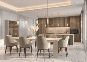 El interior de la villa está equipado con características de alta gama que garantizan comodidad y modernidad. Con seis dormitorios y siete baños, la distribución es espaciosa y funcional. El suelo de gres porcelánico añade un toque de elegancia y durabilidad. La propiedad incluye aire acondicionado y calefacción por suelo radiante, asegurando confort en todas las estaciones. Los armarios empotrados ofrecen amplio espacio de almacenamiento, mientras que el sistema de domótica y el videoportero proporcionan seguridad y conveniencia. La cocina está equipada con electrodomésticos de última generación, haciendo de este espacio un lugar ideal para los amantes de la gastronomía.
