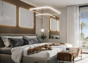 El interior de la villa está diseñado con un enfoque en la comodidad y la funcionalidad. Los suelos de gres porcelánico aportan un toque moderno y elegante a los espacios. La villa cuenta con cinco dormitorios, todos ellos con armarios empotrados, lo que garantiza un amplio espacio de almacenamiento. Los cinco baños están diseñados para ofrecer el máximo confort y funcionalidad. La distribución incluye un garaje, proporcionando un espacio seguro para el estacionamiento de vehículos. La villa también dispone de una terraza, que se integra perfectamente con el interior, creando un espacio luminoso y acogedor.